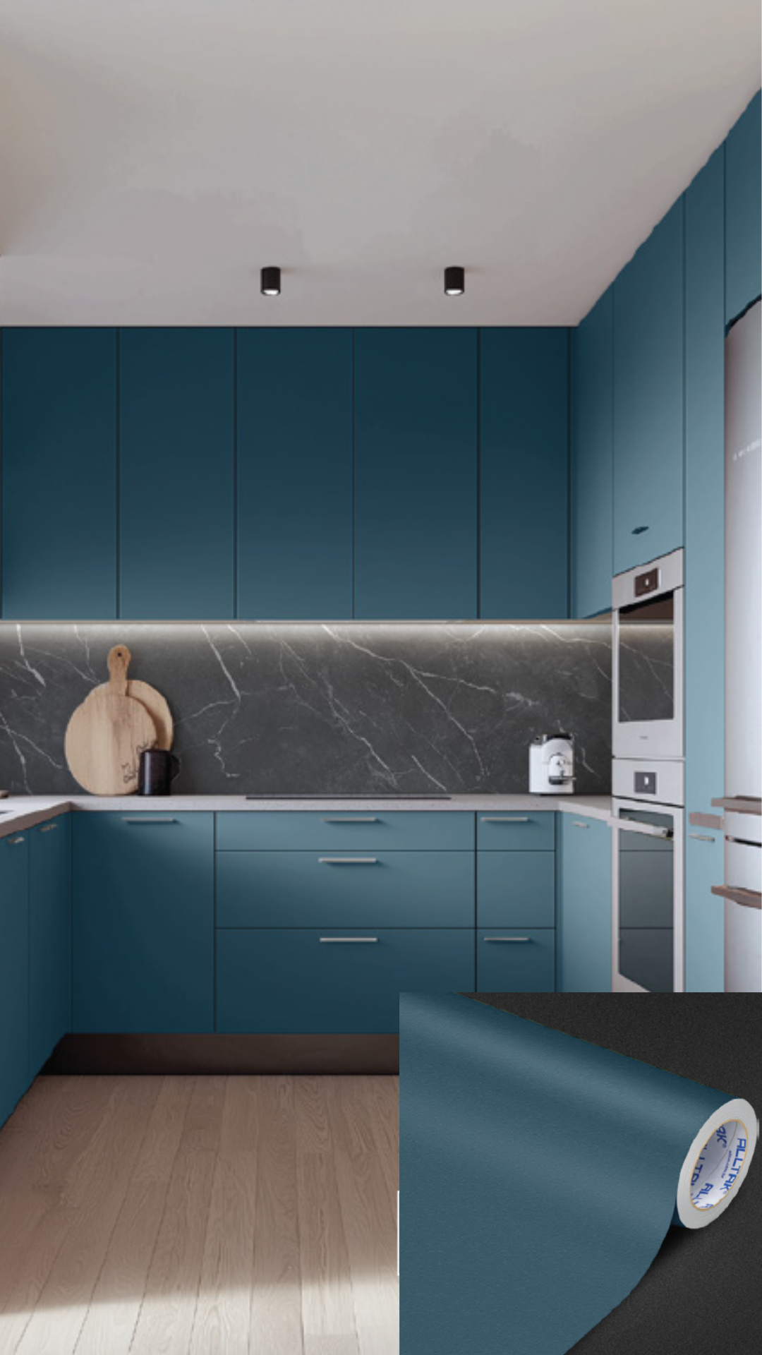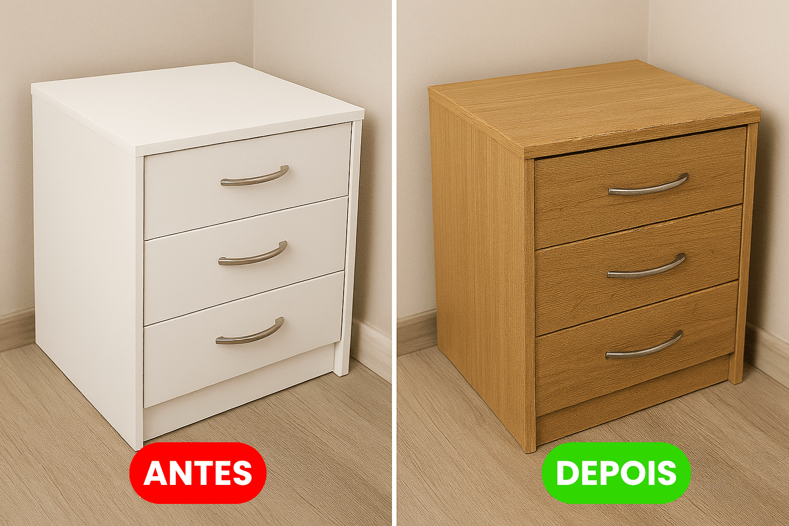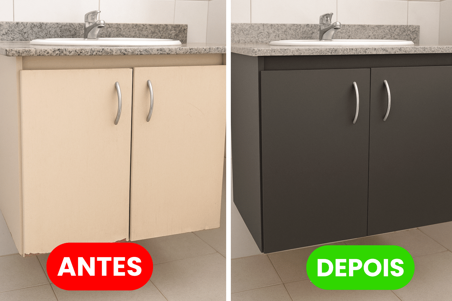 Trabalhamos apenas com vinil de alta durabilidade, da mesma linha usada em envelopamento automotivo. São materiais resistentes à umidade, calor e fácil de limpar no dia a dia. Você pode escolher entre cores sólidas, texturas como inox escovado, madeira ou até estampas personalizadas.